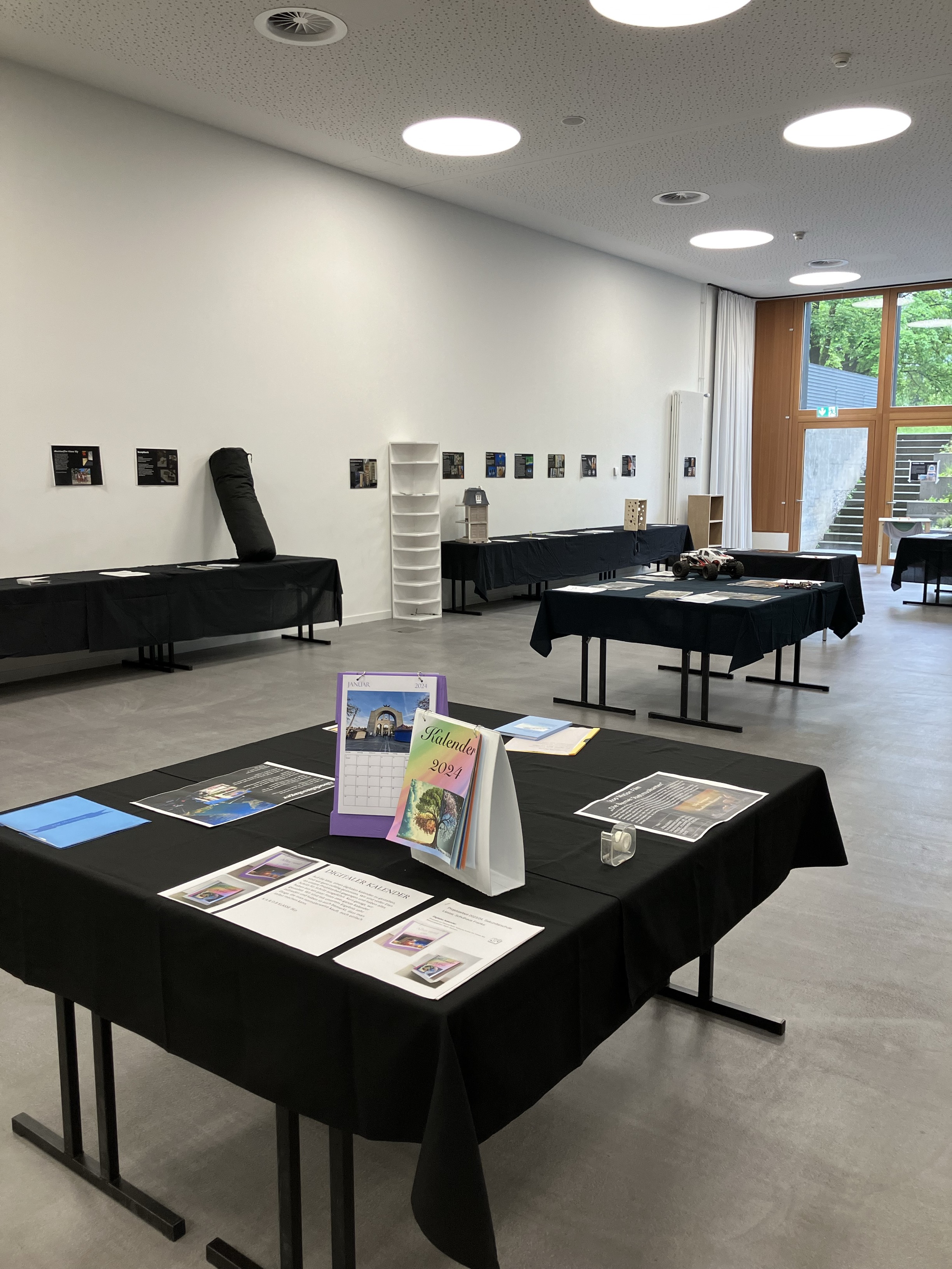Im Rahmen des Open-House-Events konnten die Eltern und Erziehungsberechtigten am 07. Mai 2024 die eindrücklichen Projektarbeiten der 9.-Klässlerinnen und 9.-Klässler bestaunen. Die Kreativität der Jugendlichen zeigte sich auf vielfältige Weise mit eigenen Mangas, selbst geschriebenen und kunstvoll gestalteten Kinderbüchern, kulinarischen Experimenten, selbst entwickelten Games, Schmuck, Kleidern, Möbeln, Seifenkisten, ein selbst gebauter Brunnen etc. Die Jugendlichen standen während des Anlasses den Besucherinnen und Besuchern stolz Red und Antwort.
